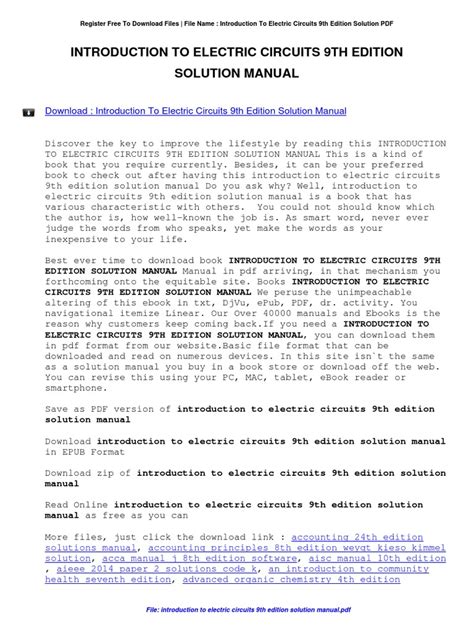 Read solution manual for electric circuits 9th edition Kindle Editon online is a convenient and frugal way to read solution manual for electric circuits 9th edition you love right from the comfort of your own home. Yes, there sites where you can get Kindle Editon "for free" but the ones listed below are clean from viruses and completely legal to use.